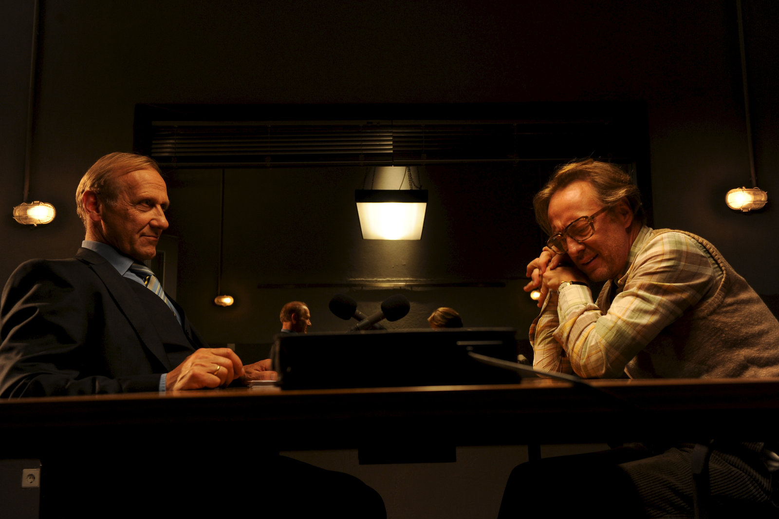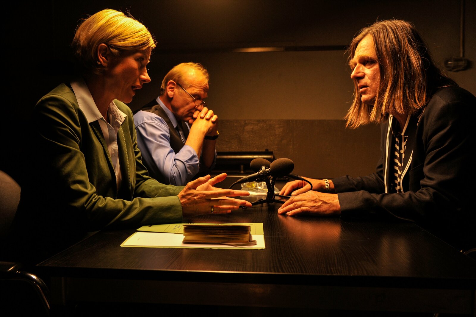 ZahltagHotelier Tobias Hellmann (Dieter Landuris, l.) wird von Jo Stoll (Peter Ketnath, r.) vernommen.Bild: © ZDF und Markus Fenchel