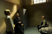Zu viel des GutenKriminaldirektor Michael Kaiser (Karl Kranzkowski, M.) und seine Kollegin Martina Seiffert (Astrid M. Fünderich, l.) vernehmen Paul Lehmann (Arved Birnbaum, r.) in der Zelle. Der Obdachlose steht unter Mordverdacht.Bild: © ZDF und Markus Fenchel