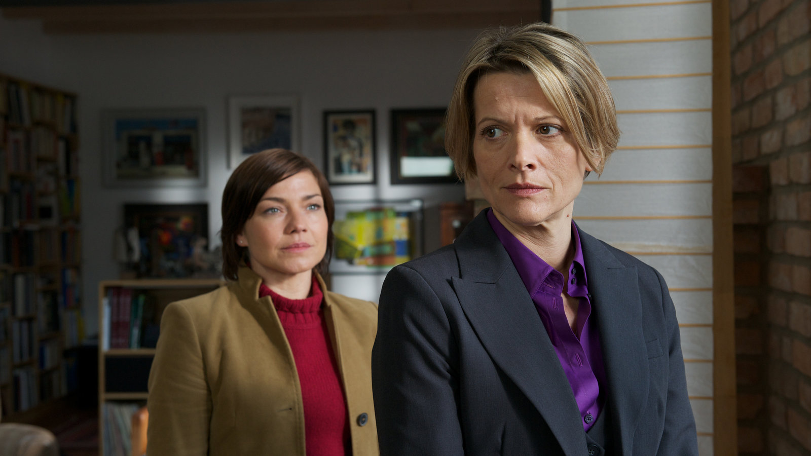 Zurück in die WirklichkeitCornelia Breitner (Karin Giegerich, r.) ist entsetzt über Olivers Tod. Aber wirklich viel weiß sie über ihren einzigen Sohn nicht, wie Kommissarin Börensen (Claudia Schmutzler, l.) feststellen muss.Bild: © ZDF und Marc Meyerbröker