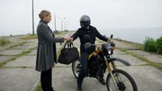 Ohne AbschiedAls sie mit den Kindern aus dem Urlaub zurückkommt, ist Claudia Mehrings (Tanja Wedhorn, l.) Mann verschwunden. In einem Erpresserbrief verlangen die Entführer 150 000 Euro. Verzweifelt besorgt sie das Geld und übergibt es einem maskierten Motorradfahrer.Bild: © ZDF und Marc Meyerbroeker