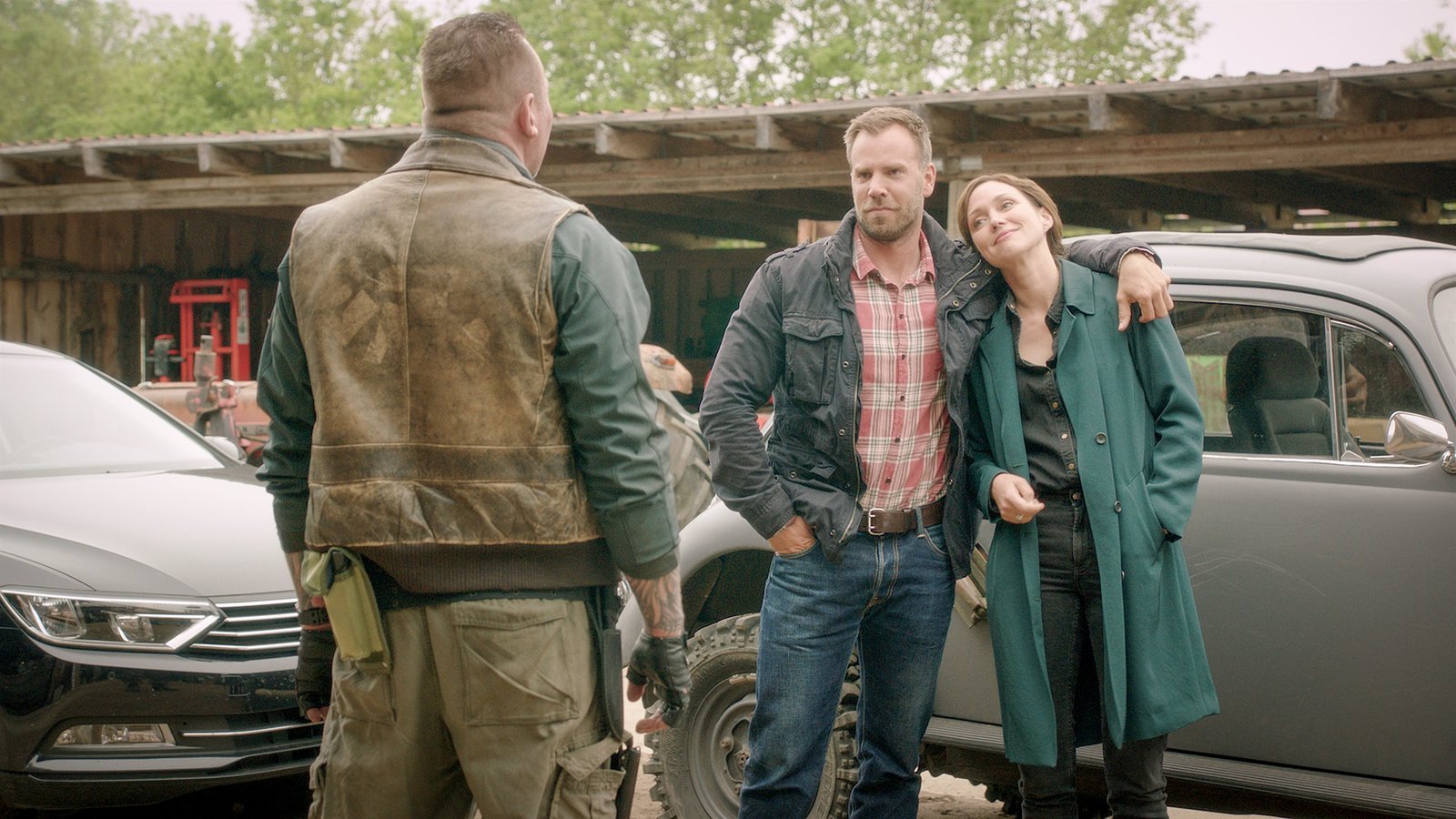 Lebe lieber unterirdischDie Kommissare Joost (Nike Fuhrmann, r.) und Pöhlmann (Dominic Boeer, M.) machen sich einen Eindruck von Ulf Karmann (Marko Dyrlich, l.). Der Mann ist sogenannter Prepper und bereitet sich auf einen möglichen Niedergang der Gesellschaft vor. Und er ist der Letzte, der das Opfer Andreas Hidde lebend gesehen hat. Hidde ist regelrecht vor Karmann geflüchtet. Was ist zwischen den Männern passiert? Stehen die Kommissare vor dem Mörder von Andreas Hidde?Bild: © ZDF und ZDF / Meyerbroeker.