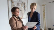 Das schönste Auto der WeltInzwischen haben die Ermittler (Claudia Schmutzler, r.) herausgefunden, dass Jehlen und Kosterlitz nicht nur in Konkurrenz um alte Autos standen. Jehlen war offensichtlich auch an Stefanie Kosterlitz (Nina Kronjäger, l.) interessiert.Bild: © ZDF und Marc Meyerbröker