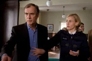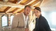 EigenheimMarkus Scheurich (Michael Wenninger, l.) ist inzwischen in Damerows Haus eingedrungen. In Jana Damerow (Anke Sevenich, r.) sieht er die letzte Möglichkeit, eine Entschädigung für sein verpfuschtes Haus zu bekommen. Ist er auch Damerows Mörder und schwebt nun auch dessen Frau in Lebensgefahr?Bild: © ZDF und Marc Meyerbroeker