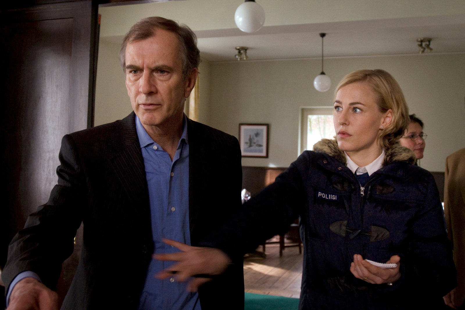 Tiefe WundenLeena Virtanen (Li Hagman, r.) muss vor allem den aufgebrachten Begleiter der Toten, Klaus Brenner (Peter Prager, l.), beruhigen. Er ist völlig außer sich und glaubt, dass verdorbenes Essen der Grund für den plötzlichen Tod seiner Verlobten war.Bild: © ZDF und Marc Meyerbröker