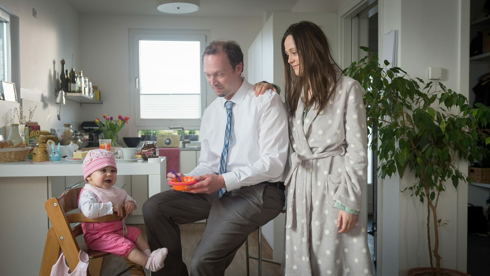 Gras drüberFinanzberater Robert Meier (Tim Porath) führt gemeinsam mit Ehefrau Anja Meier (Iris Becher) und der gemeinsamen Tochter ein beschauliches Leben in Schwerin.Bild: © ZDF / Marc Meyerbroeker Lizenzbild frei