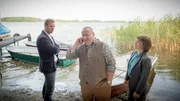Der russische SoldatVor 36 Jahren wurde Sofia zuletzt am Neuklostersee gesehen. Was ist damals passiert? Ist es ein Zufall, dass Ronny Roth jetzt ausgerechnet hier gestorben ist?, fragen sich Pöhlmann (Dominic Boeer), Reuter (Udo Kroschwald) und Börensen (Claudia Schmutzler).Bild: © ZDF / Marc Meyerbroeker Lizenzbild frei