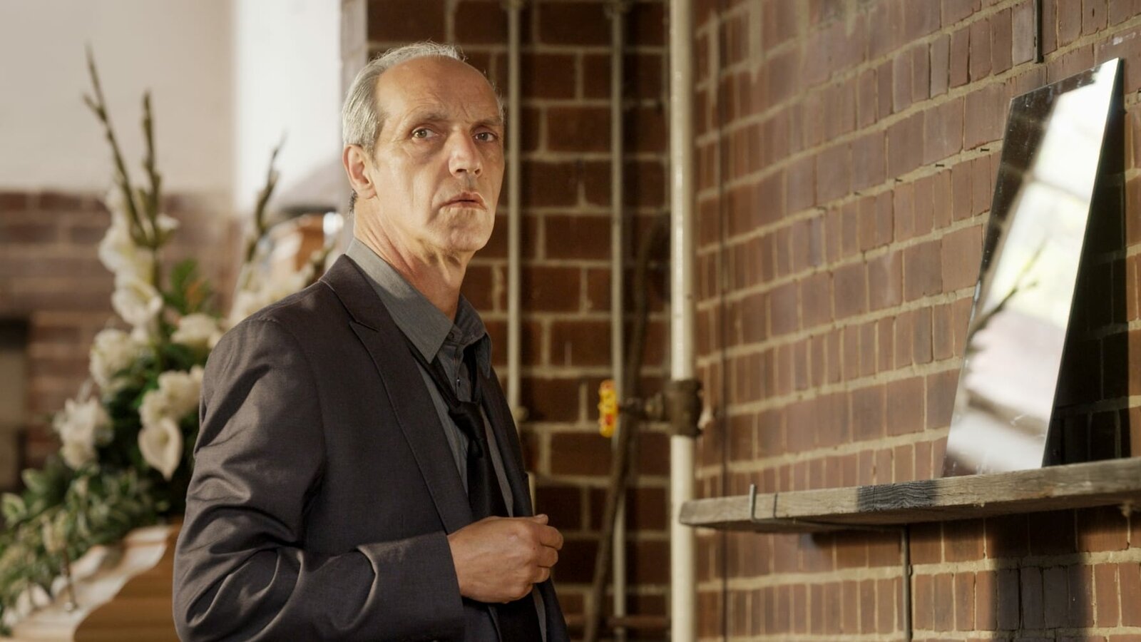NebenwirkungenAm Morgen wurde der Vermieter der Eheleute Merz (Silvina Buchbauer und Hubertus Hartmann) in der Bank, die Gunnar Merz leitet, tot aufgefunden. Welche geheimnisvolle Beziehung hatte das Paar zu ihm und steht dieses Verhältnis in Zusammenhang mit seinem Tod?Bild: © ZDF und Marc Meyerbröker