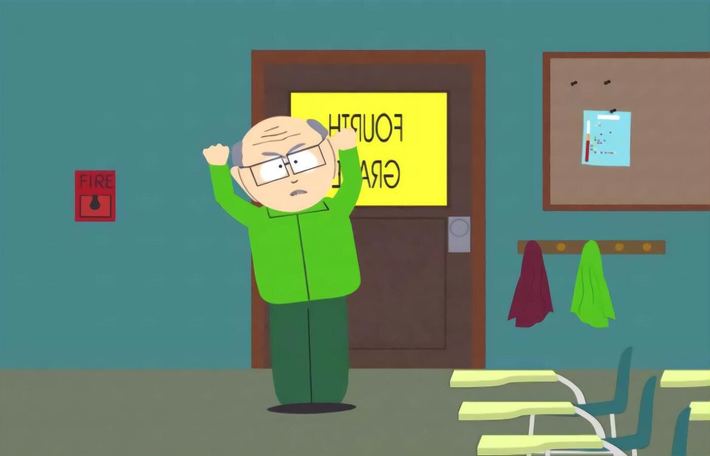 Moos-FerkelMr. Mackey (4.v.l.), Heidi (m.), PC Principal (hinter), Eric (2.v.r.)Bild: © ViacomCBS