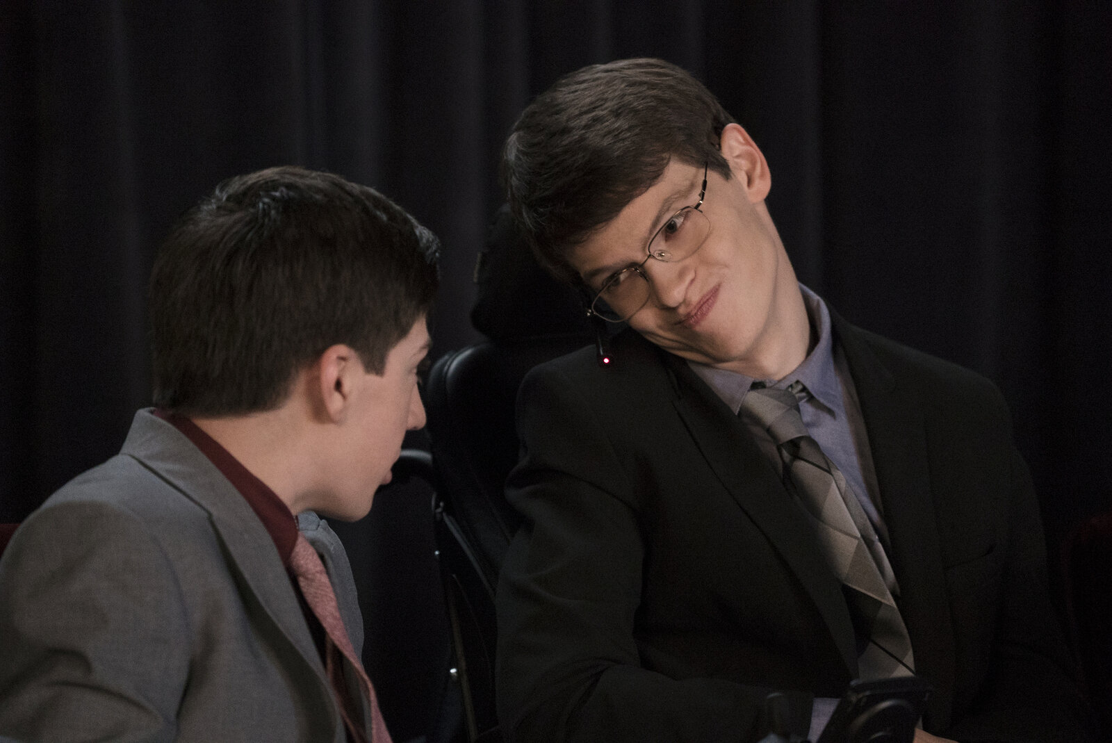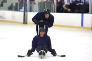 Auf dünnem EisJJ (Micah Fowler, l.) würde gerne einem Schlittenhockeyteam beitreten, das nur aus Menschen mit Behinderungen besteht. Jimmy (John Ross Bowie, r.) findet dies jedoch zu gefährlich für seinen Sohn ...Bild: © 2016-2017 American Broadcasting Companies. All rights reserved. Lizenzbild frei