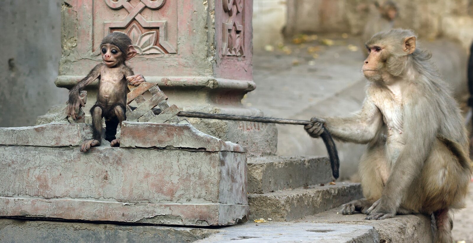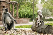 Schlaue KöpfeEin erwachsener Rhesus-Makake prüft die Leidensfähigkeit eines Makakenbaby-Roboters.Bild: © ZDF und Michael W Richards.