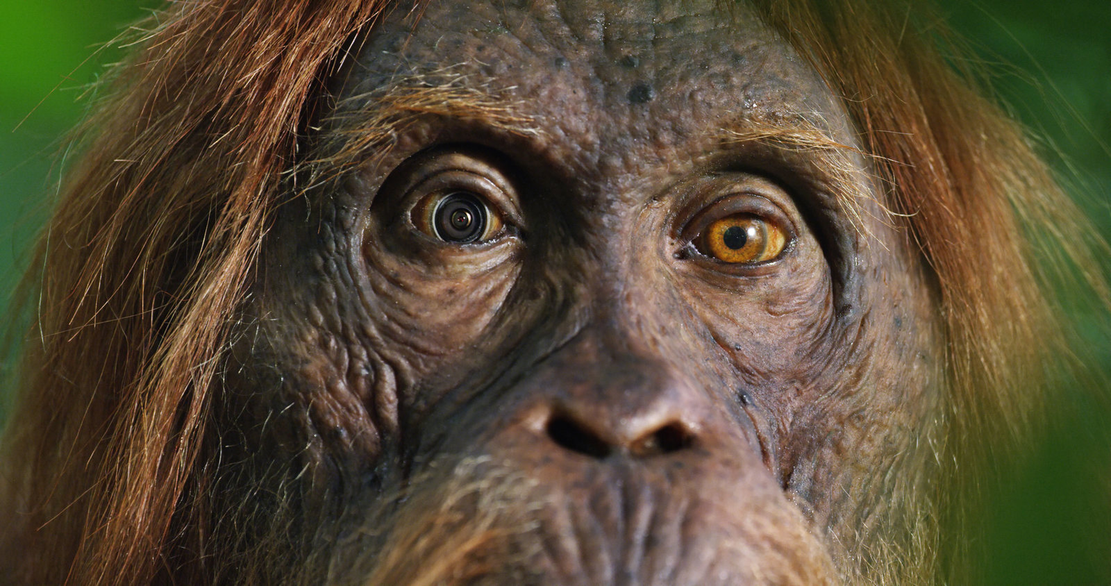Schlaue KöpfeDas naturgetreu gestaltete Gesicht des Orang-Roboters kann Mimik imitieren. Selbst die Spionage-Kamera im Auge ist kaum wahrnehmbar.Bild: © ZDF und Stephen Downer
