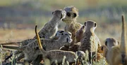 Spione im Tierreich - Smarte StrategenDie neugierigen Erdmännchen untersuchen mit großem Eifer den künstlichen Verwandten.Bild: © ZDF und Richard Jones