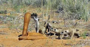 Spione im Tierreich - Smarte StrategenVorsichtig tasten sich die Erdmännchen an die Spionage-Speikobra heran. Für den Umgang mit dem giftigen Reptil haben sie spezielle Taktiken entwickelt.Bild: © ZDF und Richard Jones