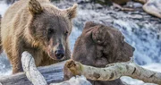 Spione im Tierreich - FamilienbandeEin Grizzly in Alaska untersucht neugierig eine täuschend echt gestaltete Attrappe eines Bären, in deren Auge eine Kamera sitzt.Bild: © ZDF und John Downer Productions.