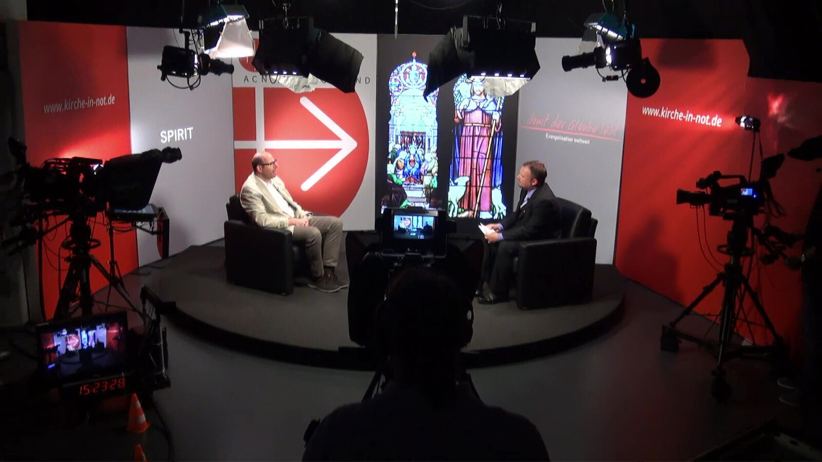 Die Familie heiligenv.l. Pfarrer Erich Maria Fink und Volker Niggewoehner im GesprächBild: © Bibel TV