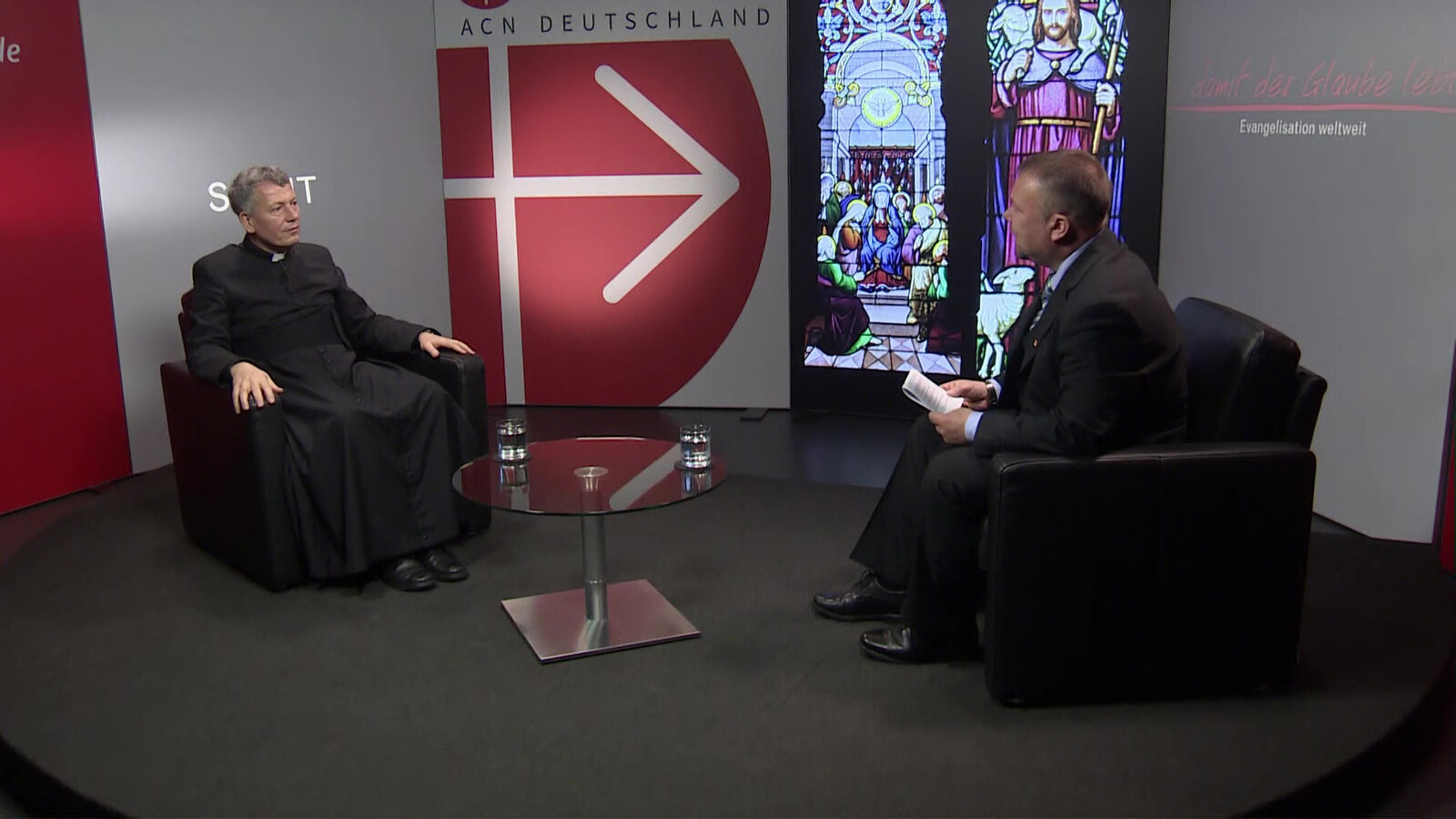 Der Brief von Papst Franziskus an das Volk Gottes in DeutschlandProf. Christoph Ohly (l.) spricht mit Moderator Volker Niggewoehner. Verwendung nur in Verbindung mit Programmkommunikation. Jede andere Nutzung ist untersagtBild: © Bibel TV