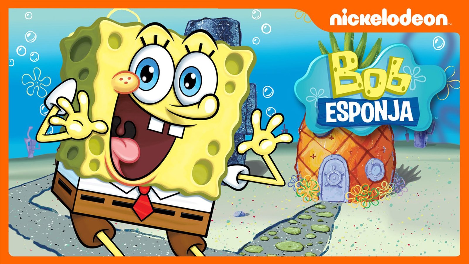La serie se enfoca principalmente en las aventuras de una pequeña esponja antropomorfa rectangular amarilla y sus amigos ubicados en el fondo del Océano Pacífico en una ciudad llamada Bikini Bottom.Bild: © Nickelodeon