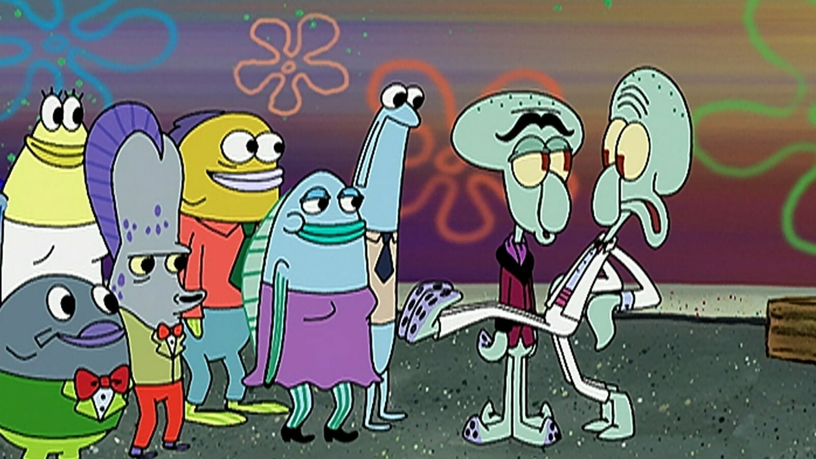 Harte JungsSquilliam (2.v.r.), Squidward (r.)Bild: © ViacomCBS