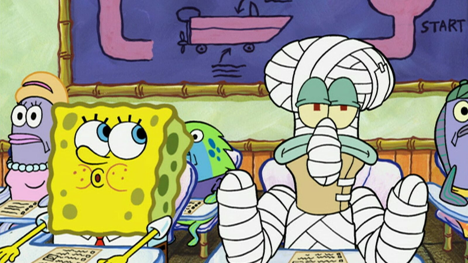 Das AnschlagbrettL-R: Mr. Krabs, SquidwardBild: © ViacomCBS
