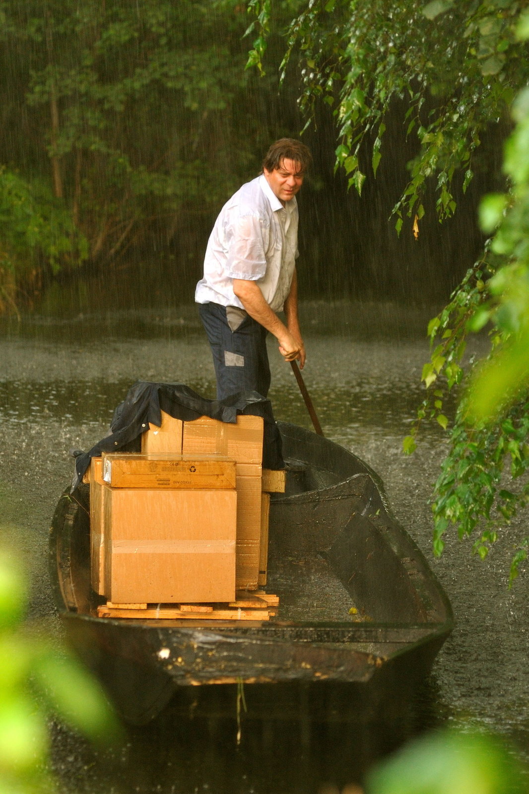 Mörderische HitzeGottfried (Roeland Wiesnekker) fährt im Regen Pakete aus.Bild: © ZDF und Hardy Spitz