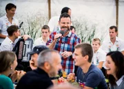 Das große WiedersehenGastgeber Nik Hartmann führt seine Gästeschar zum FestzeltBild: © SRF/Oscar Alessio