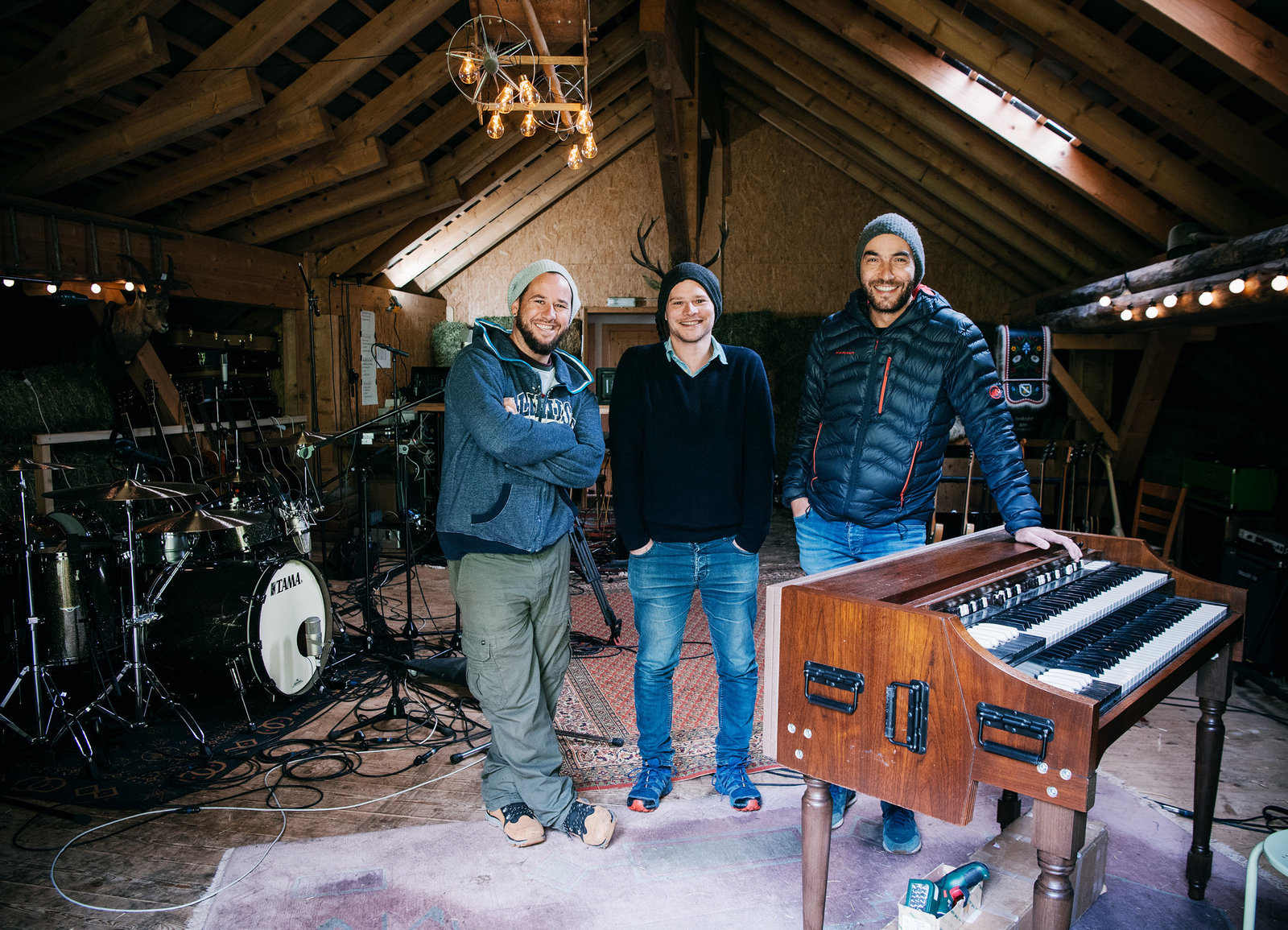 Trauffers Alpenträume: HeimatsoundSRF bi de Lüt - Heimatsound Trauffers Alpenträume Folge 1 Marc Trauffer mit den Produzenten Dave Hofmann und Frank NiklausBild: © SRF1