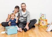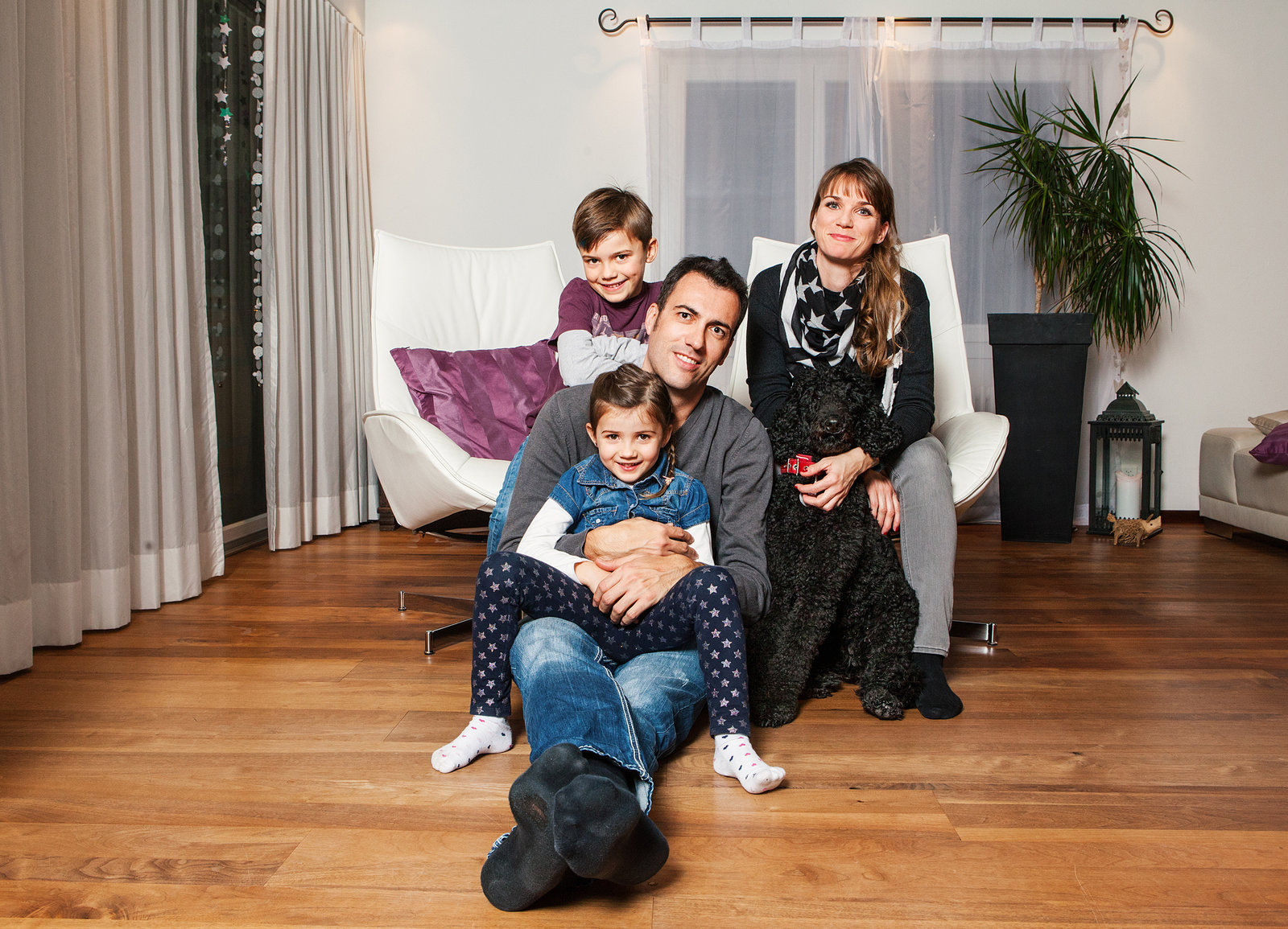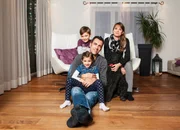 Familiensache (2)Familie Mäder: Patrik und Maria Mäder mit ihren Kindern Yannik und Joline und Königspudel PequenitaBild: © SRF/Miriam Künzli