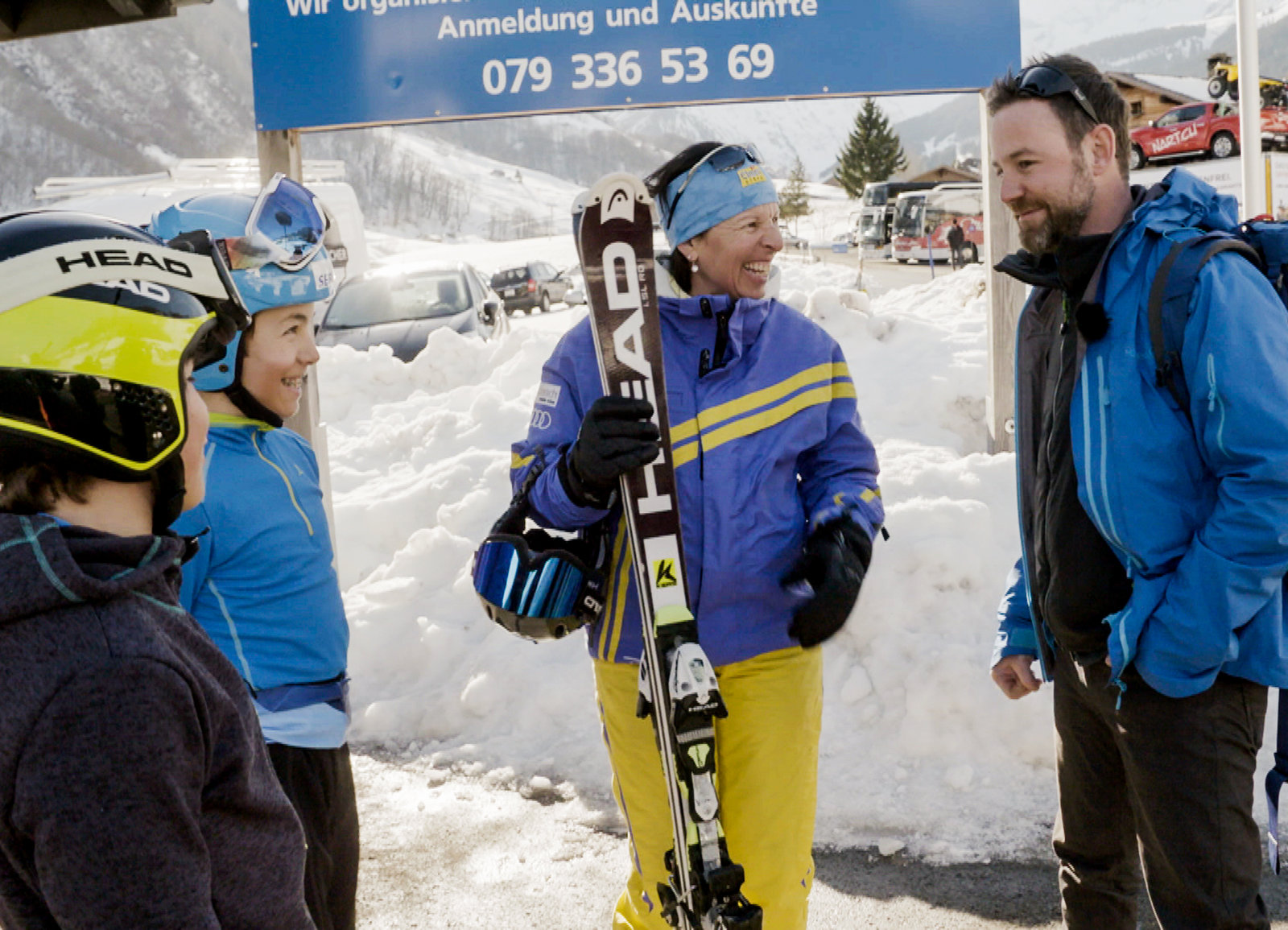Winter Wunderland (3)Einst Skistar, heute Mutter: Nik Hartmann trifft in Elm Vreni Schneider und ihre beiden Buben Flavio und FlorianBild: © SRF