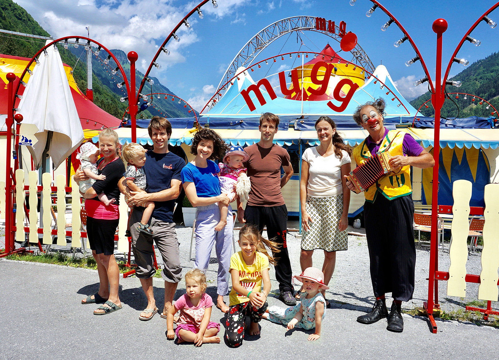 Familiensache Ferienzeit (1)Gruppenbild der Familie Mugg : Darinka Muggli mit Kindern Mona, Pablo und Anic Ischa, Mann von Darinka Milu mit Kindern Nora und Sina Stephan Muggli (Mann von Milu) Susanne Fanzott (Partnerin von Mugg) mit Tochter Norelia und MuggBild: © SRF