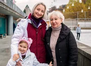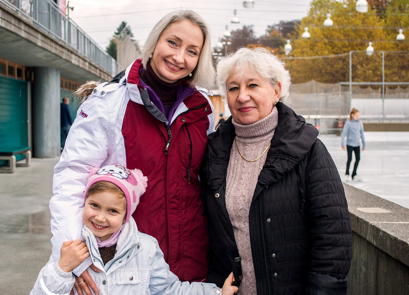 Eiszeiten (2)Gruppenbild: Eiskunstlauftrainerin Elena Bondarchuk (M.) mit Ihrer Mutter Fatima Bonderchuk und Tochter Marie Bernejo (6-jährig)Bild: © SRF