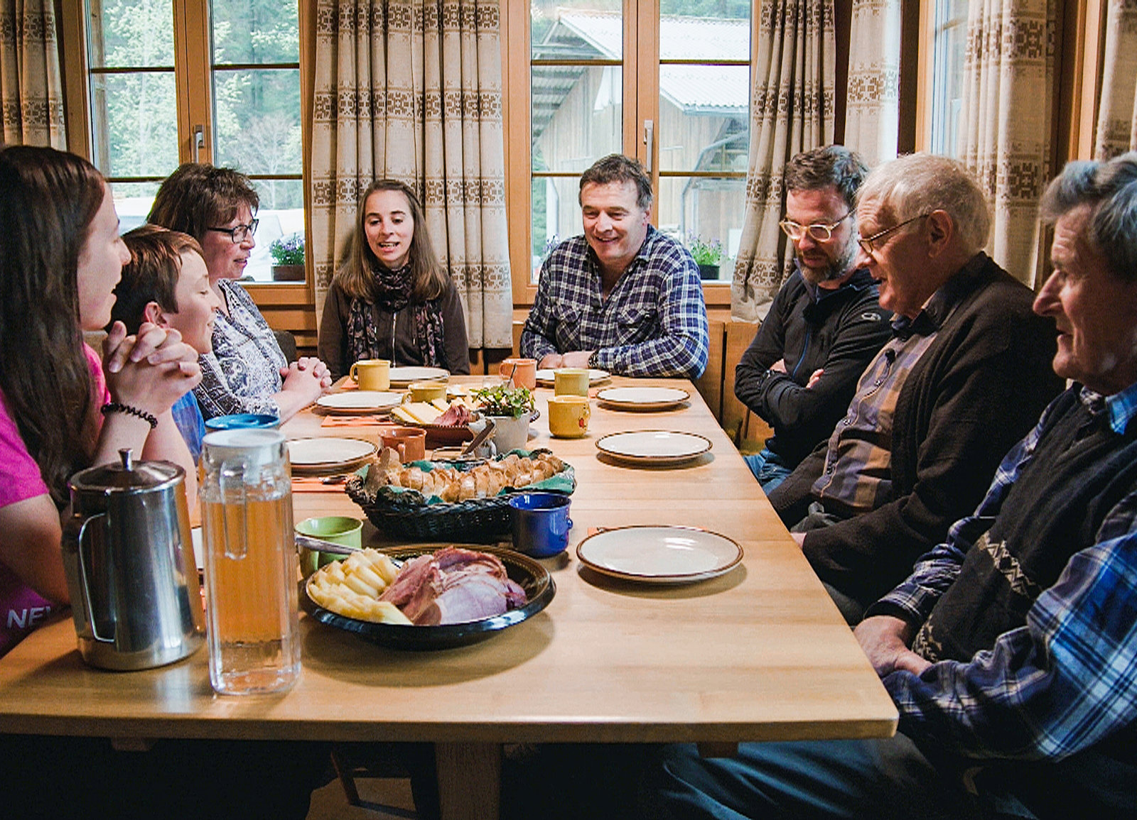 Wunderland - Emmental BENik Hartmann (3.v.r.) zu Besuch bei einer Täufer-FamilieBild: © SRF