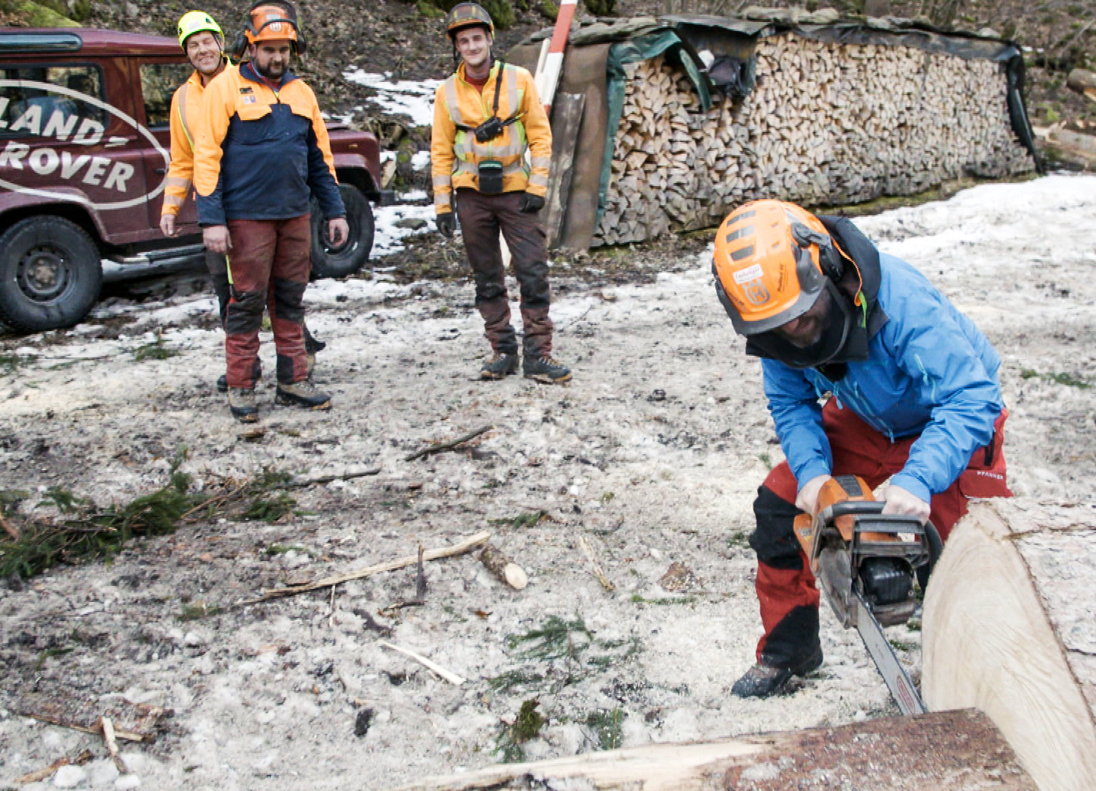 Winter Wunderland (3)Nik Hartmann trifft auf dem Suworow-Weg Glarner Holzer, die ihn sofort einspannenBild: © SRF