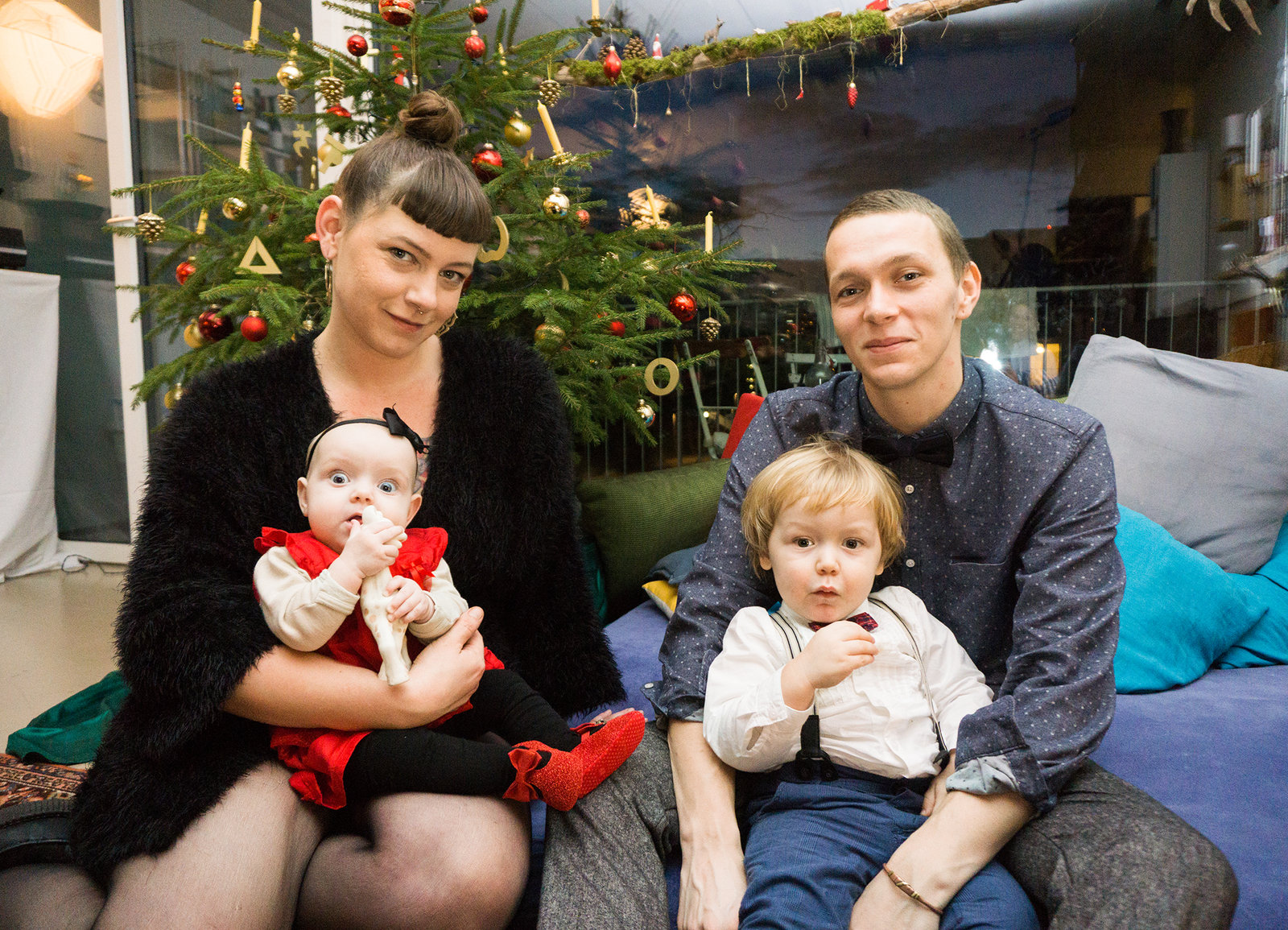 Frohes FestTheresa Valeska von Moorburg und Julian Stauffer: Sie leben zusammen mit ihren beiden Kindern in einer Wohngemeinschaft. Es ist hier stets ein munteres Kommen und Gehen.Bild: © SRF