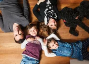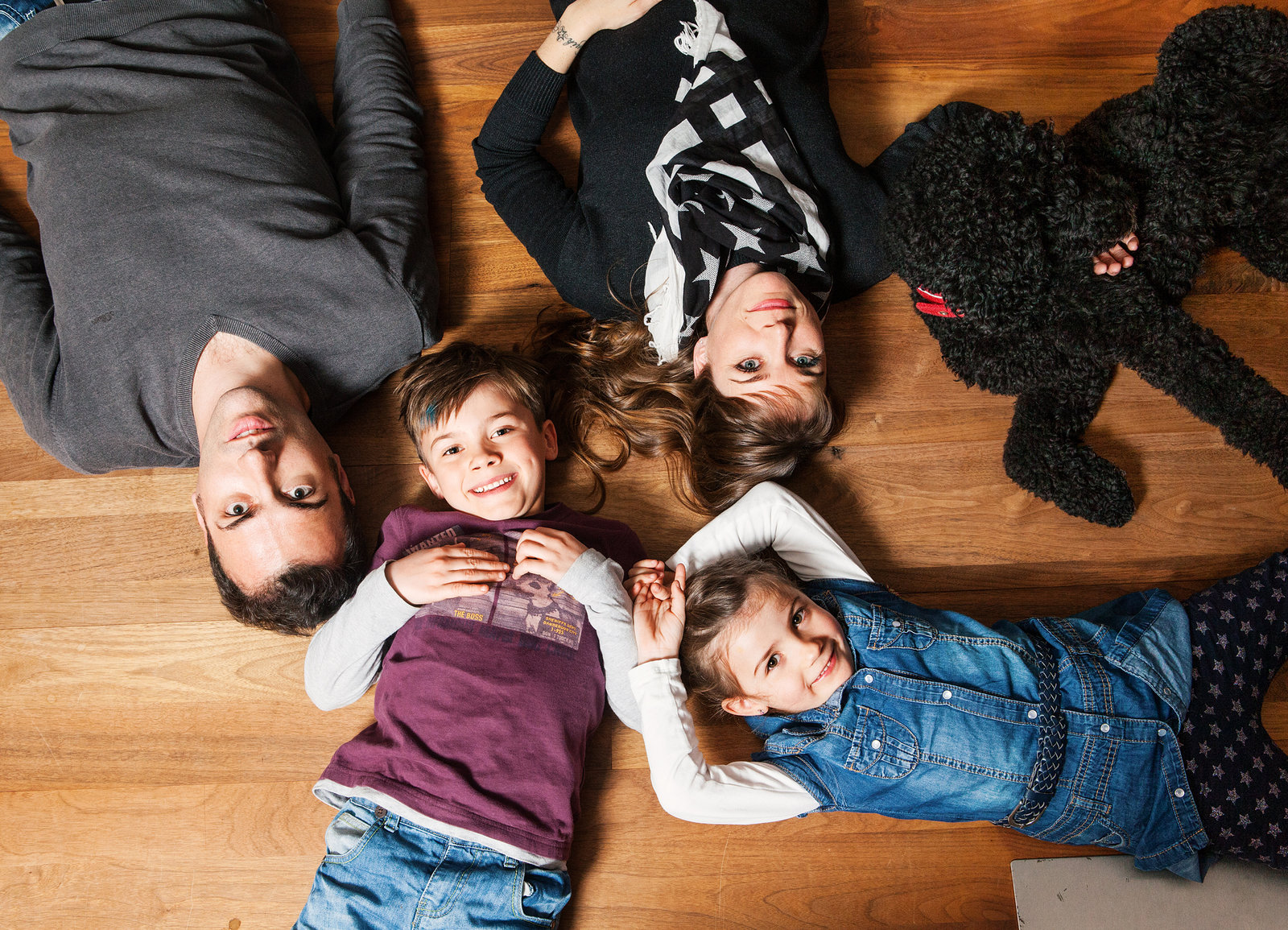 Familiensache (4)Familie Mäder: Patrik und Maria Mäder mit ihren Kindern Yannik und Joline und Königspudel PequenitaBild: © SRF/Miriam Künzli