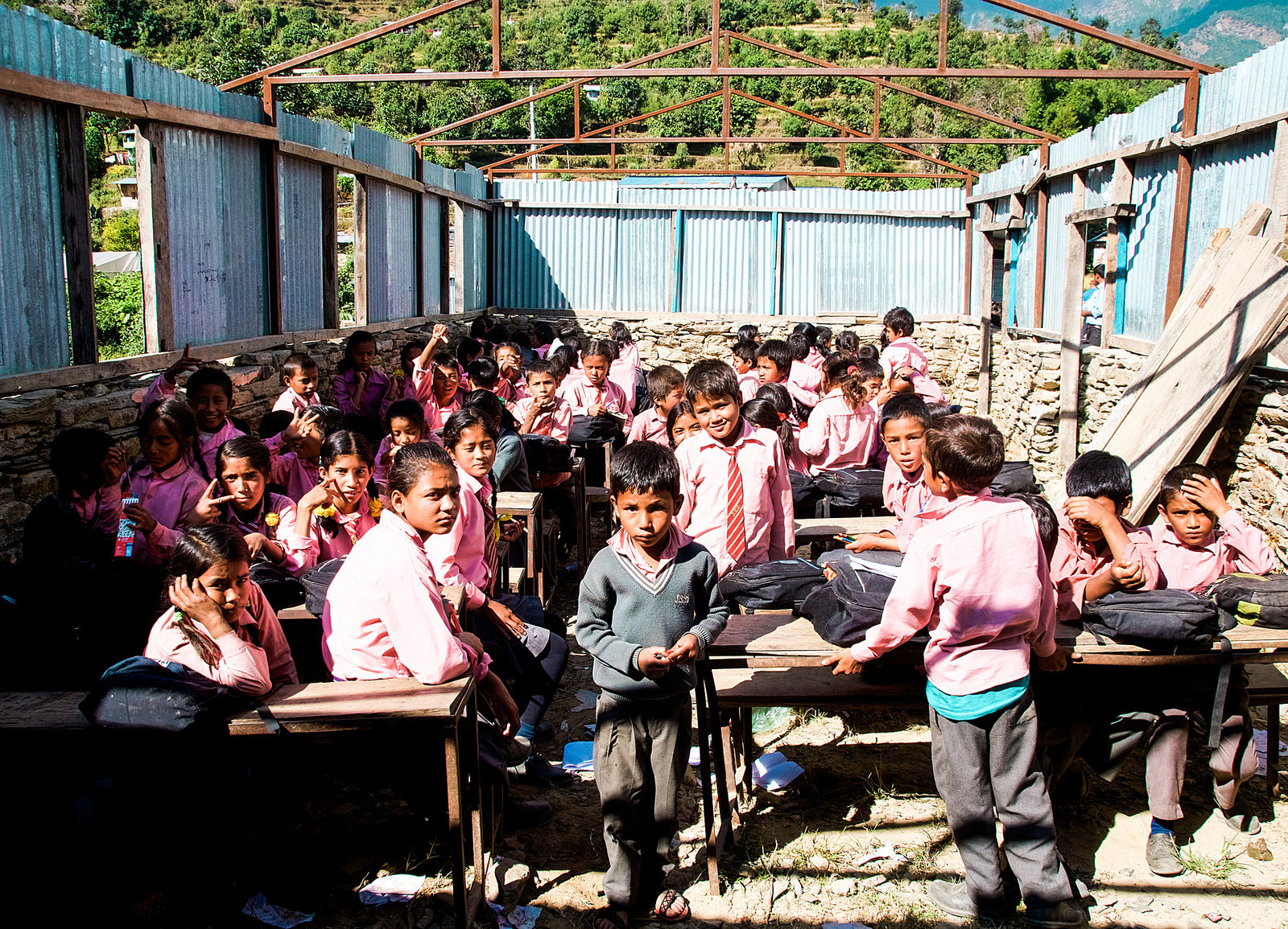 Aufbruch zu neuen UfernSchüler in der provisorischen Schule von Leptung nach dem ErdbebenBild: © SRF