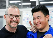Fokus Japan - Unterwegs mit Patrick Rohr (2)Begegnung mit dem Nudelspezialisten: Patrick Rohr mit Rikiya Nakano, Leiter des Udon Nudel Klubs in FujiyoshidaBild: © SRF/Reto Vetterli