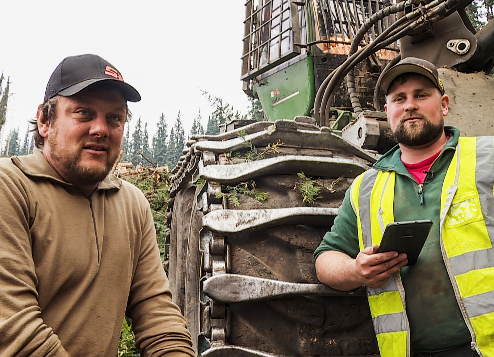 Auf und davon - ein Jahr danachFamilie Volk sucht ihr Glück in Kanada: In den Rocky Mountains bauen sie ein Holzfällerunternehmen auf.Bild: © SRF