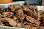 Angkor Wat: Die mystische Tempelanlage von Marc Riboud / Valencia: Der geheime Garten / Shafas namibisches Grillfleisch / Vogesen: Schützenhilfe aus AlaskaFein geschnittenes und gewürztes Rindfleisch vom Grill, Kapana, ist ein Klassiker des namibischen Street Food und wird mit gebratenem Brot und einer kühlen Soße serviert.Bild: © arte