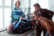 Auf Eis gelegtGerichtsmediziner Dr. Jahn (Eisi Gulp, l.) untersucht die gefrorene Leiche des Bürgermeisters und zeigt Rebecca (Lilian Klebow, M.) und Marc (Siegfried Terpoorten, r.) Erstaunliches - befruchtete Eizellen auf dem Arm des Bürgermeisters, die seine Gene tragen ...Bild: © Sat.1 Eigenproduktionsbild frei