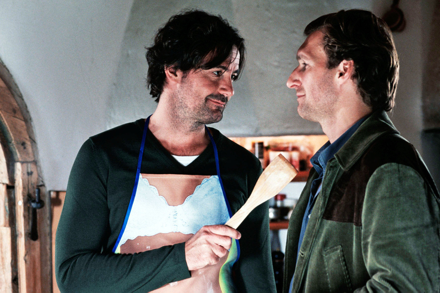 Auf Eis gelegtAnette wird durch den Tod ihres Vorgängers Bürgermeisterin. Sie vereinbart mit Frebert (Robert Lohr, l.), dass dieser als Patenonkel ein bis zweimal die Woche abends bei Anette ist und Jonas hütet. Mark (Siegfried Terpoorten, r.) ist alles andere als begeistert ...Bild: © Sat.1 / Kerstin Stelter