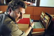 Schief gewickeltAls Carla Gern beim Nobelitaliener schnell auf die Toilette verschwindet, nutzt Mark (Siegfried Terpoorten) die Gelegenheit und fotografiert eine Akte aus ihrer Mappe.Bild: © Sat.1 / Hans Seidenabel