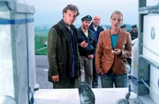 Auf Eis gelegtUm die Zeit des Auftauens einer gefrorenen Leiche und eventuelle Auswirkungen herausfinden zu können, testet Dr. Jahn (Eisi Gulp, r.) verschiedene Methoden an einem gefroren Hausschwein. Dafür verbringt er die Nacht vor einem Kühltransporter, wo ihn Marc (Siegfried Terpoorten, l.) und Rebecca (Lilian Klebow, M.) am Morgen treffen ...Bild: © Sat.1 / Kerstin Stelter