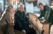 Schweigen ist GoldIn der Murnauer Kirche wird eine Anwältin erschlagen. Der Täter hat dem nichts ahnenden Pfarrer (Nikol Voigtländer, M.) den Mord gebeichtet. Rebecca (Lilian Klebow, l.) und Mark (Siegfried Terpoorten, r.) haben wenig Verständnis für den moralischen Wert des Beichtgeheimnisses ...Bild: © Sat.1 / Kerstin Stelter