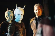 ExilNach kurzer Zeit finden Archer (Scott Bakula, r.) und Hoshi (Linda Park, r.) heraus, aus welchen Grund Tarquin sie auf seinen Planeten eingeladen hat ...Bild: © ProSieben MAXX