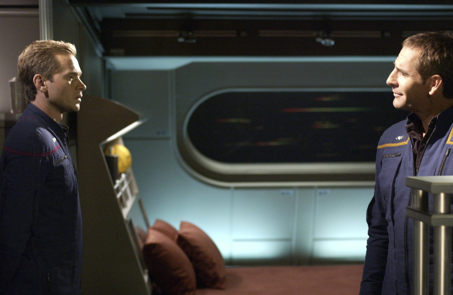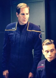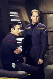 Schiff der GeisterAls die Besatzung eines abgestürzten Raumschiffes an Bord kommt, ist es mit der Ruhe von Lt. Reed (Dominic Keating, l.) und Captain Archer (Scott Bakula, r.) vorbei ...Bild: © Paramount Pictures Corporation Lizenzbild frei