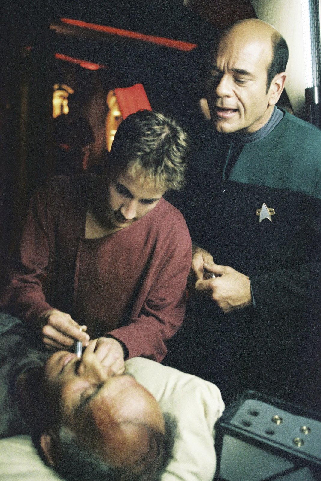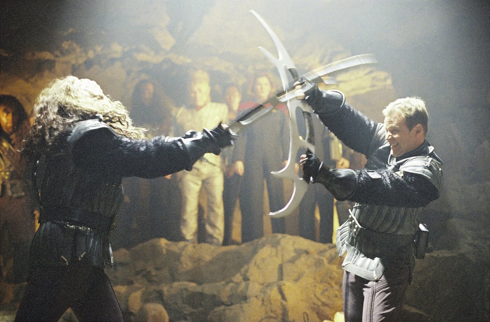 Der KampfRobert Picardo (The Doctor), Kate Mulgrew (Captain Kathryn Janeway), Robert Beltran (Commander Chakotay)Bild: © 2011 CBS Studios Inc._(C)SYFY Photocredit Mandatory, Editorial Use Only, NO archive, NO Resale