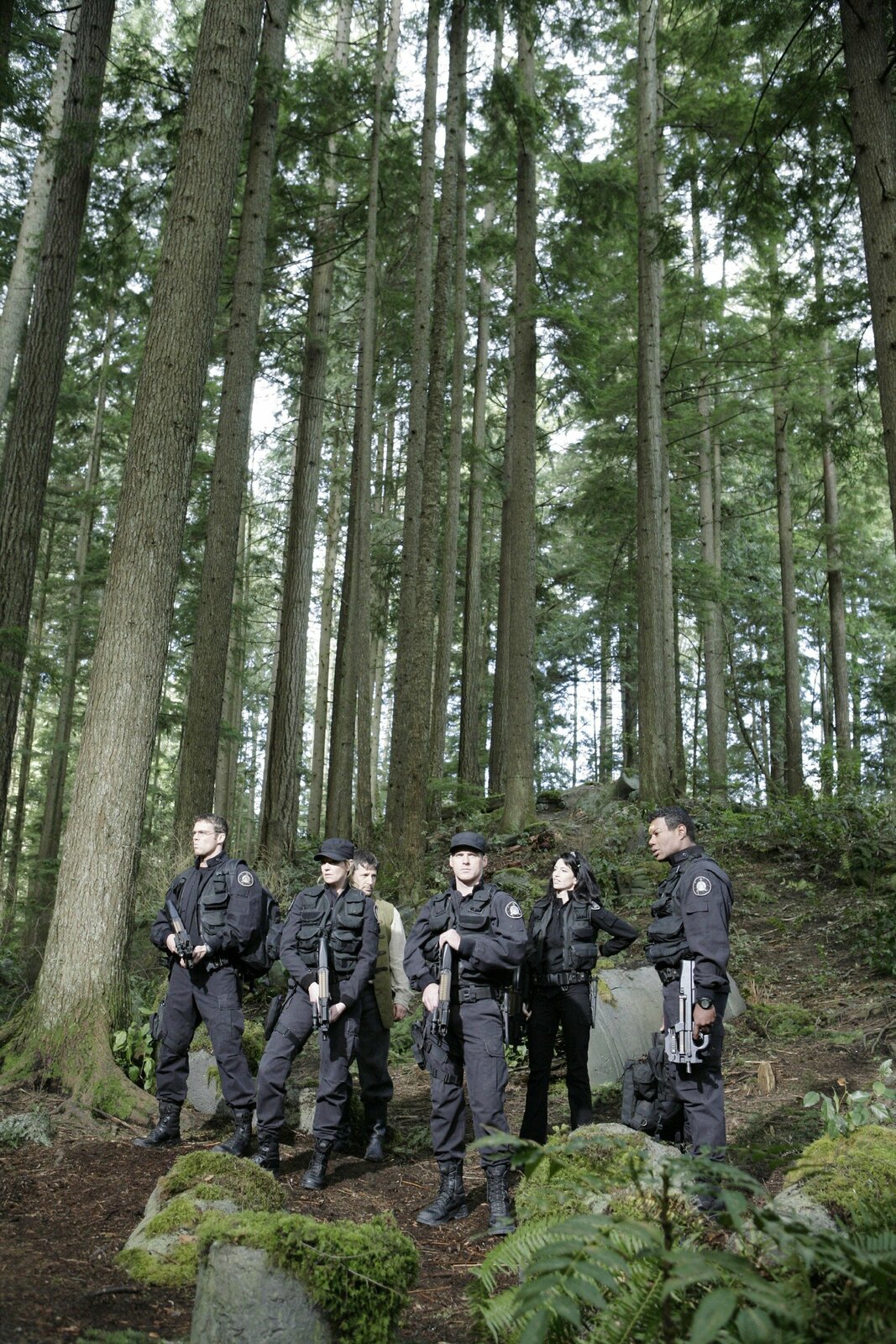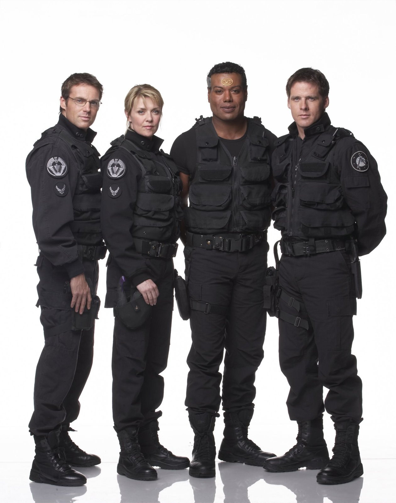 ContinuumCater (Amanda Tapping), Mitchell (Ben Browder, mi.) und Daniel (Michael Shanks, re.) müssen die Erde vor den Goa'Uld retten...Bild: © SYFY Photocredit Mandatory, Editorial Use Only, NO archive, NO Resale