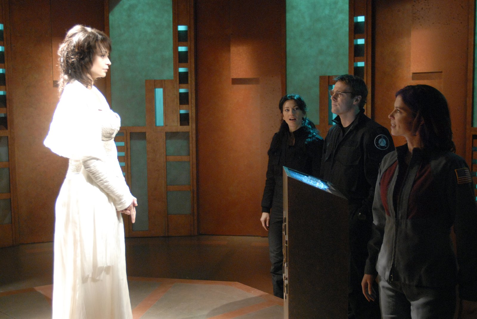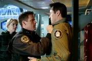 Das Vermächtnis der AtanikerAls gesundheitliche Risiken das Team zu gef%hrden drohen, befiehlt General Hammond (Don S. Davis) auf Anraten von Dr. Frasier (Teryl Rothery, re.) die Versuche mit den Armb%ndern einzustellen. Leichter gesagt als getan...! (Foto Mitte: Vanessa Angel)Bild: © Nitro.