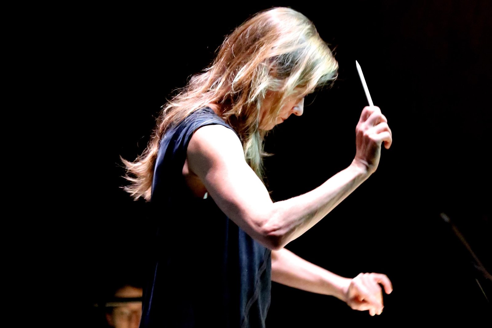 Barbara Hannigan als Dirigentin - Opernpremiere mit vollem RisikoSternstunde Musik Aufführung der Oper "The Rake's Progress" in der Konzerthalle Göteborg: Dirigentin Barbara Hannigan Copyright: SRF/Marco FeklistoffBild: © SRF/Marco Feklistoff