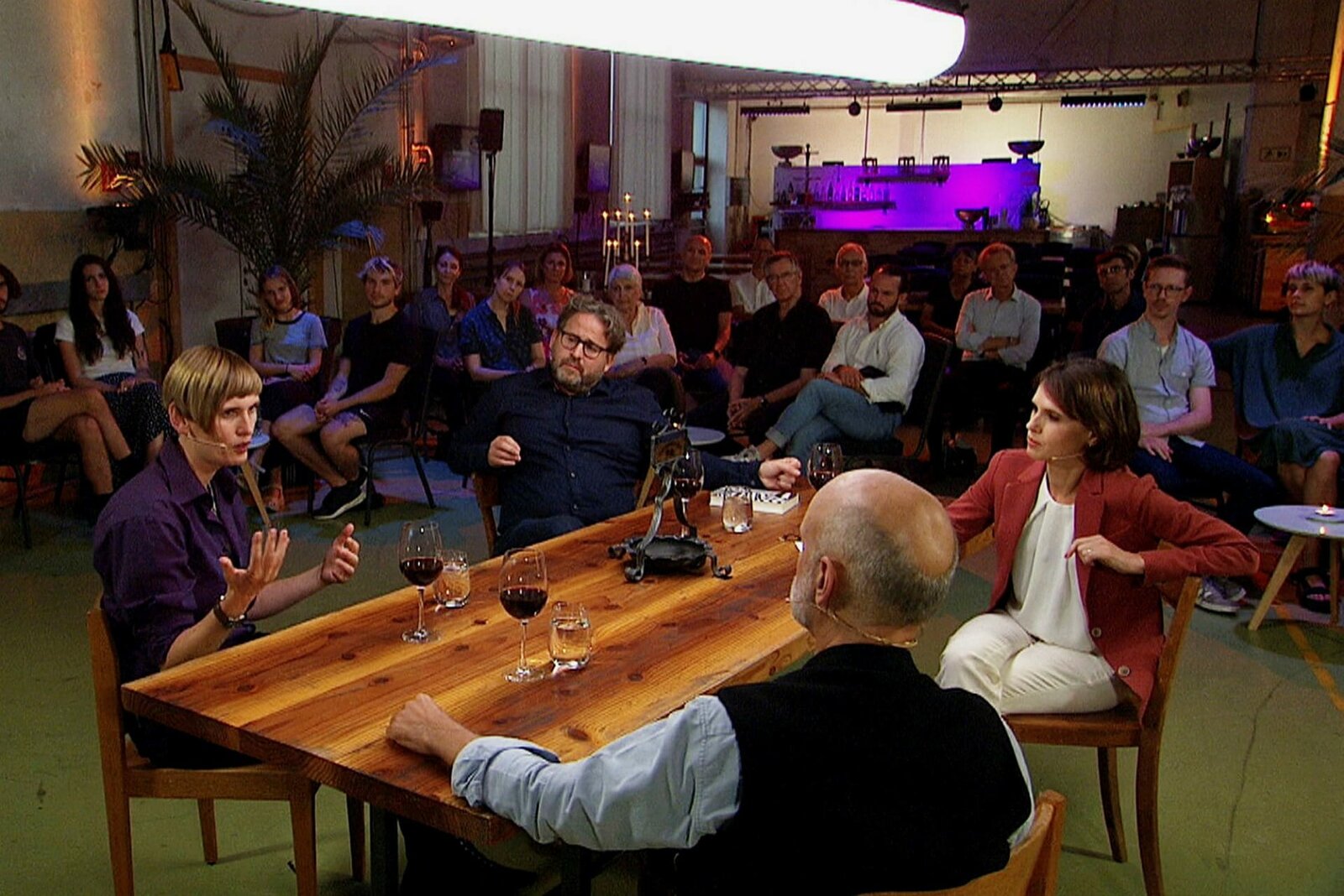 Franziska Schutzbach, Wolfram Eilenberger, Barbara Bleisch und Ijorna MangoldBild: © ZDF und SRF.